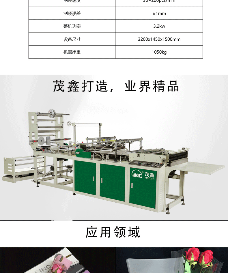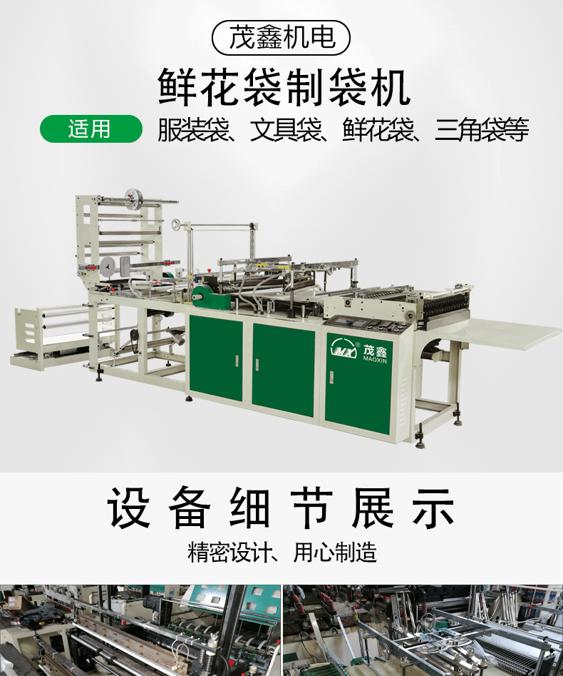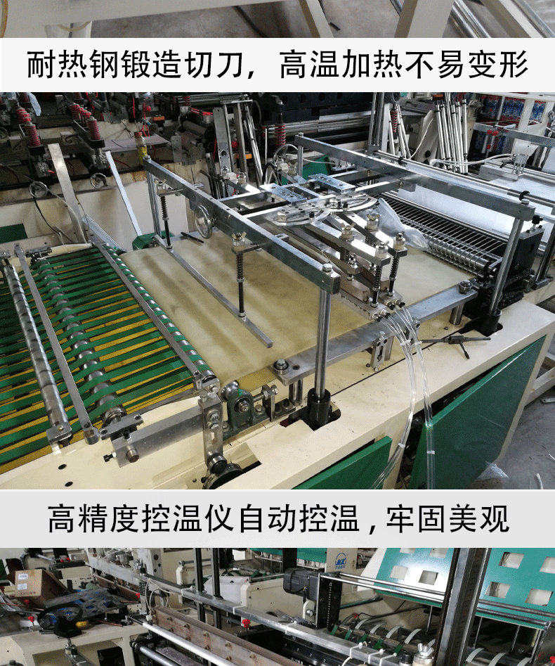 | 特點: *該機適用于BOPP、OPP、CPP、PE、PP等熱塑料性薄膜進行自動連續加工異形熱切袋,適用于制作服裝袋、文具袋、鮮花袋、三角袋等。 *采用日本伺服馬達控制,主電機采用臺灣變頻調速,意大利光電眼跟蹤彩印,出袋輸送裝置采用進口皮帶及臺灣變頻調速。 *放料架配置自動糾偏、磁粉制動張力控制系統。 *采用高精度控溫儀自動控溫,使不同厚度的膜都能保證封線牢固美觀。 *熱切刀采用進口耐熱鋼鍛造,高溫加熱不易變形,封棍采用耐高溫硅膠材料。 *電腦控制系統具有自動計數,累計數,提前報警,暫停等功能,自動控制開停機。 *根據客戶加工不同袋樣,可更換異形刀模具。 *由于不斷研究改進,我司保留改變設計之權利。 |