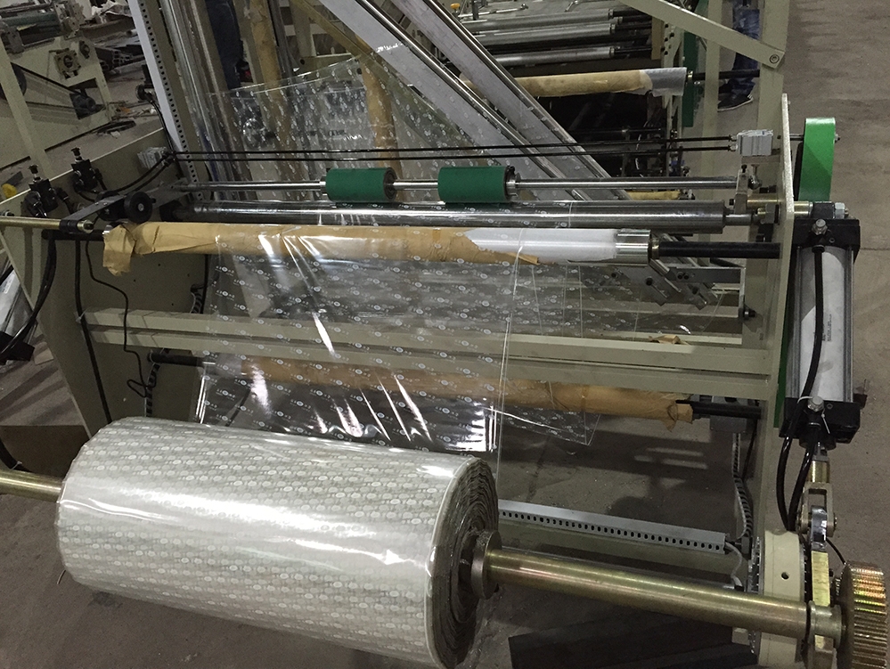 采用電腦控制三伺服電機定位,主電機變頻調速,放料雙電眼自動糾偏,后送料變頻自動送料,放料架板式臥式對折裝置,后送料自動上料。配用可移動固定切刀,可微調切刀前后、斜度位置。配有多排雙邊袋分切裝置,收料輸送裝置。具有自動計批計數、靜電消除、邊料處理,壓輥、張力采用氣動控制。具有倍送、高位停機、跟蹤錯位停機、料完報警停機等功能,精度高、速度快、制袋平整、雅觀,是制作塑料復合袋的理想設備。