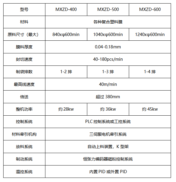 MXFQ+L系列 全自動三層六送熱封冷切制袋機