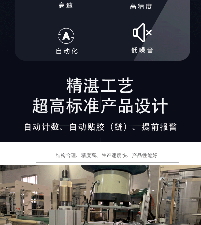 * 電腦控制系統具有自動計數、累計數、提前報警、暫停等功能、自動控制開停機、自動化程度高。